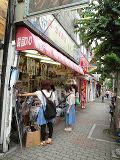 I finally did get to Shin-okubo after taking in all the various interesting ..... smells.  Korea Town is in Shin-okubo.  I gather Korean Drama is very popular here in Japan as well.  They have stores selling goods with pictures of Korean stars - I recognized many of them - hehe - that was also one of the reasons Shin-okubo was on my itinerary.  Ummm, no I did not buy uchiwas!